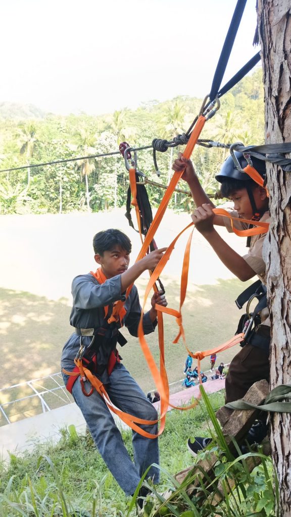 PEMA MAN 3 Cianjur menjalin kolaborasi inspiratif bersama MTs Al Bayan Kec. Leles dalam kegiatan Flying Fox yang menantang dan menyenangkan! 🧗‍♂️🌿